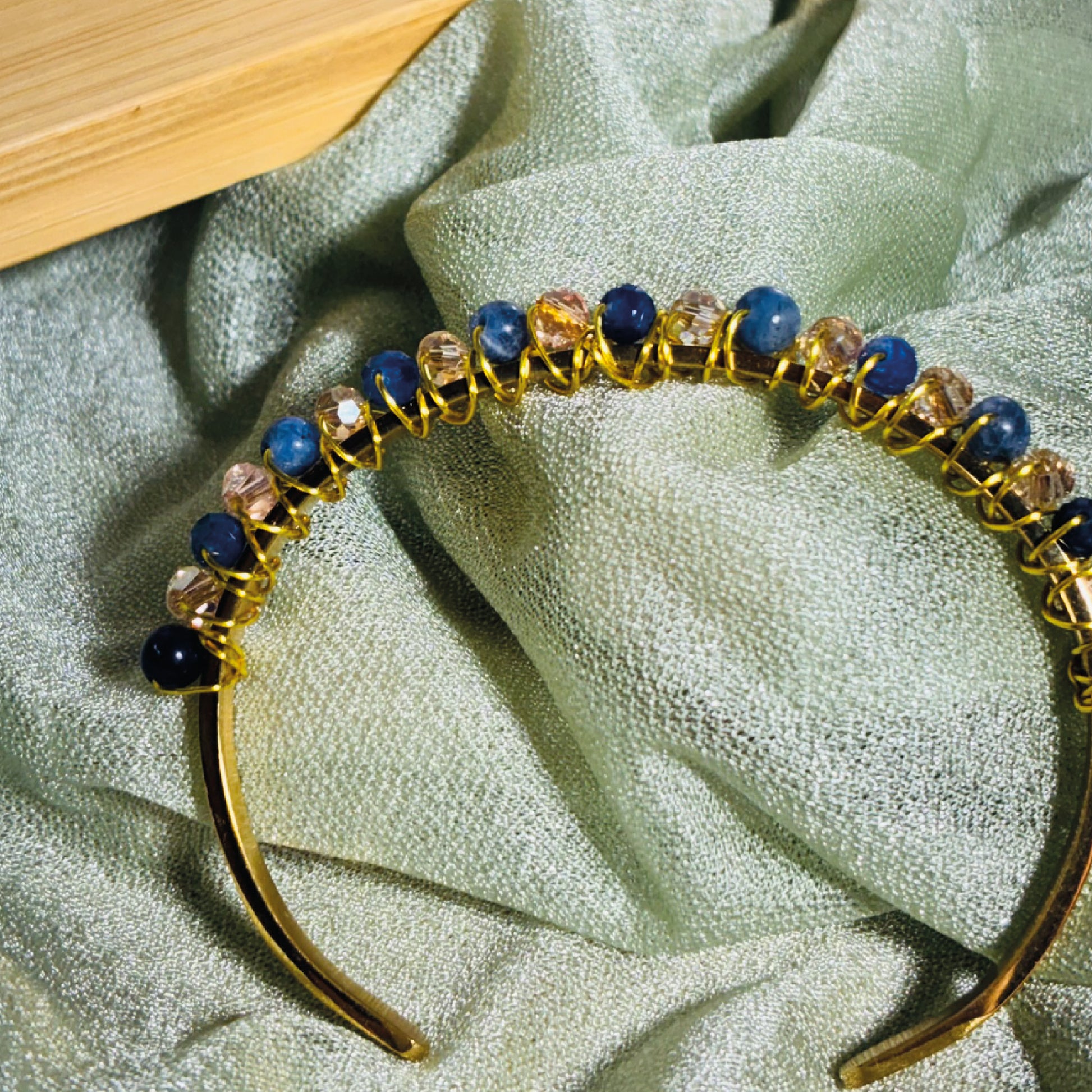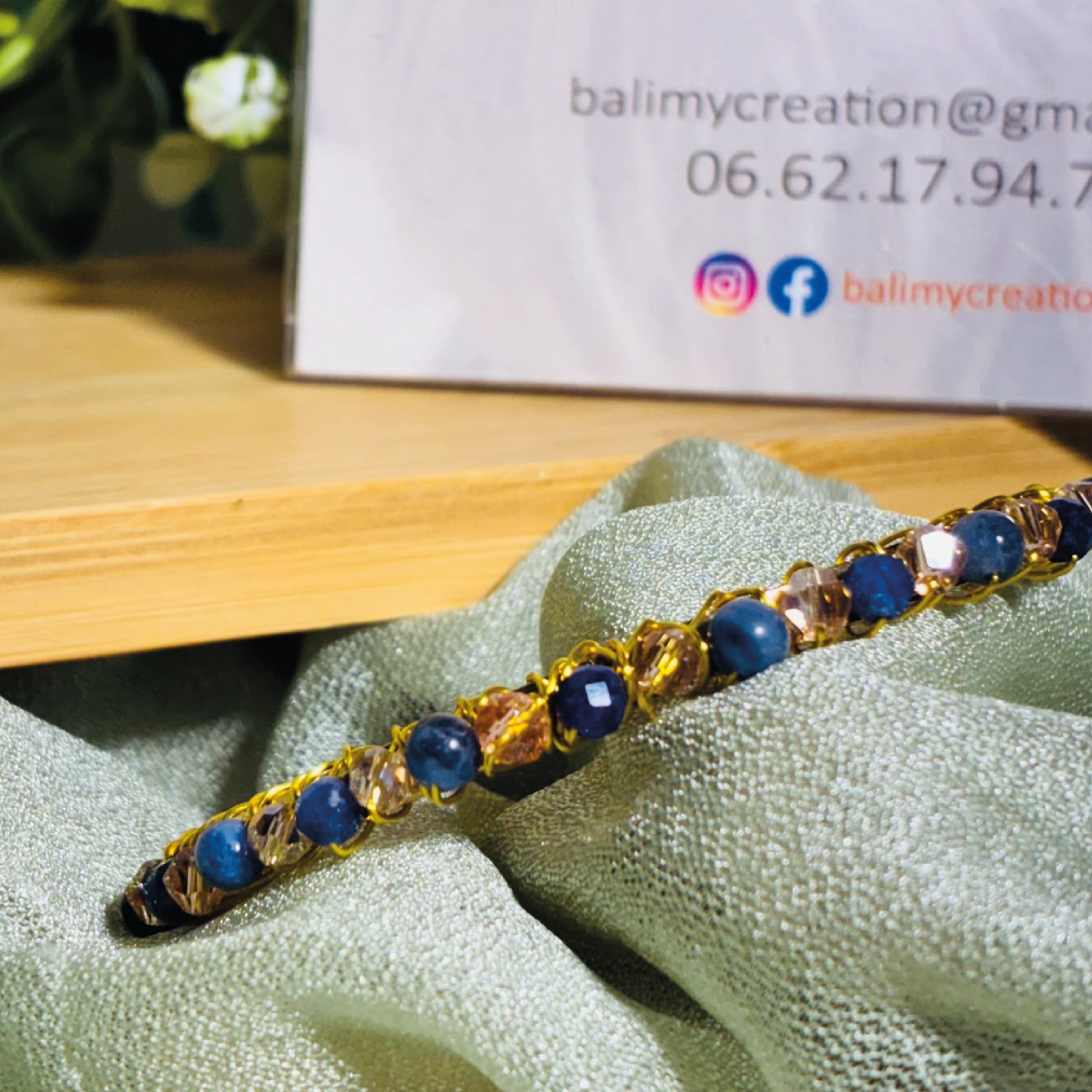Jonc 1 rang doré orné de pierres naturelles de Sodalites bleues.