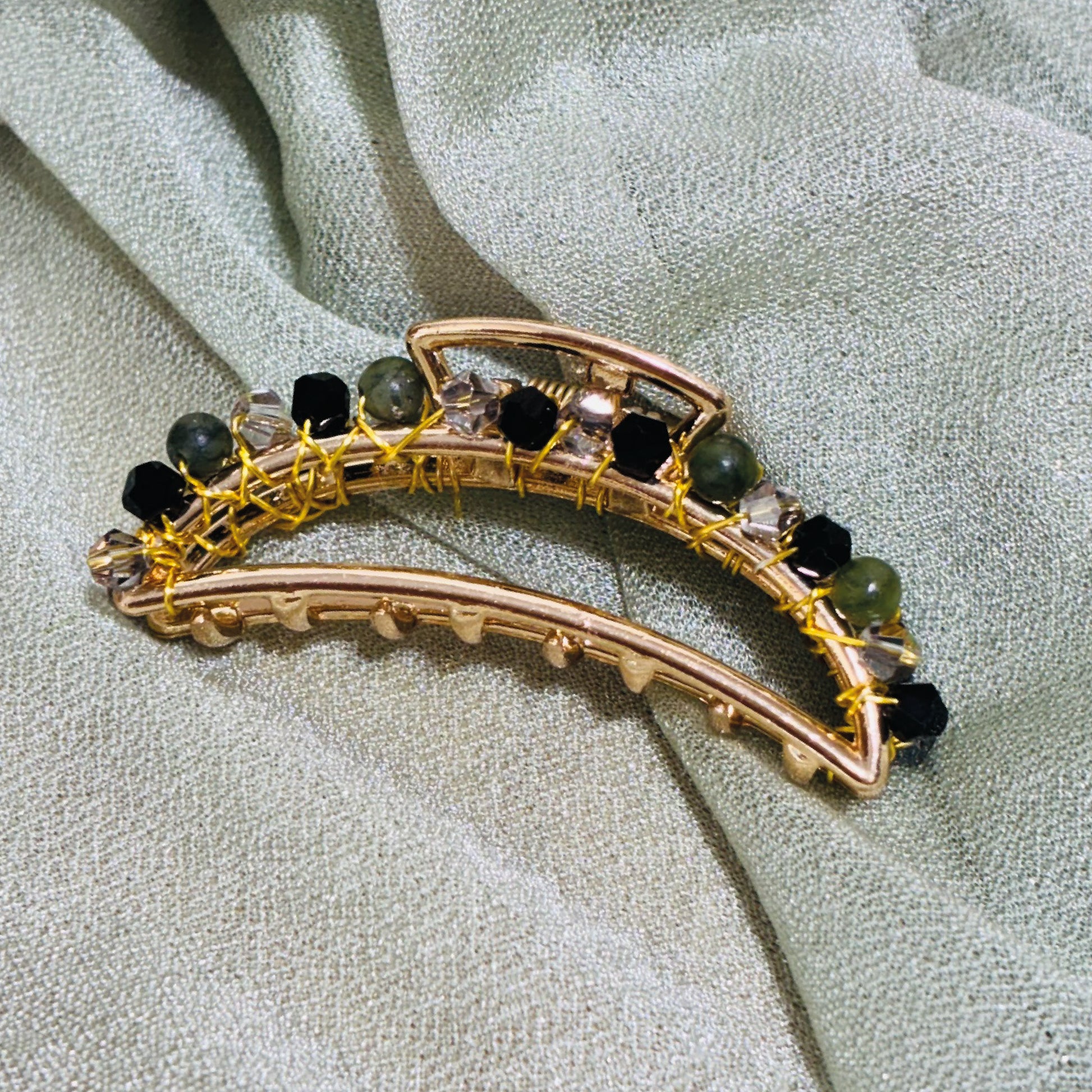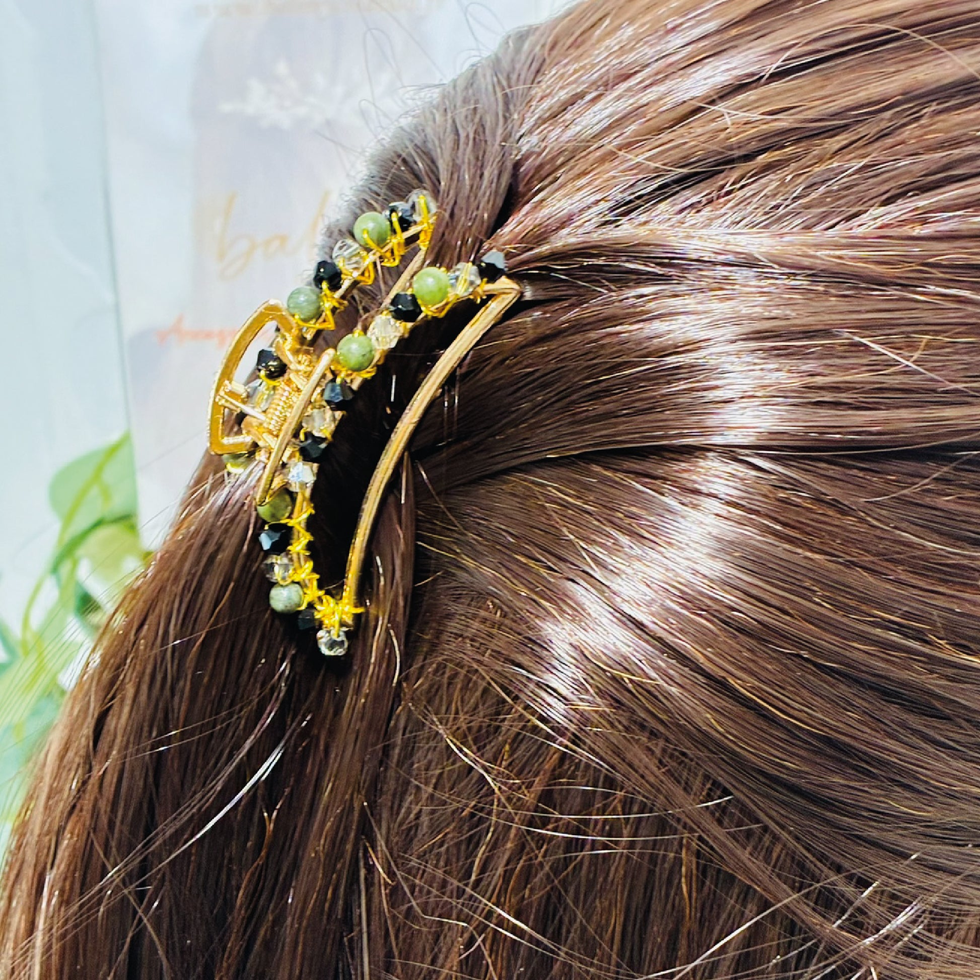 Pince croco petit modèle doré. Ornée de Jade de Thaïlande.
