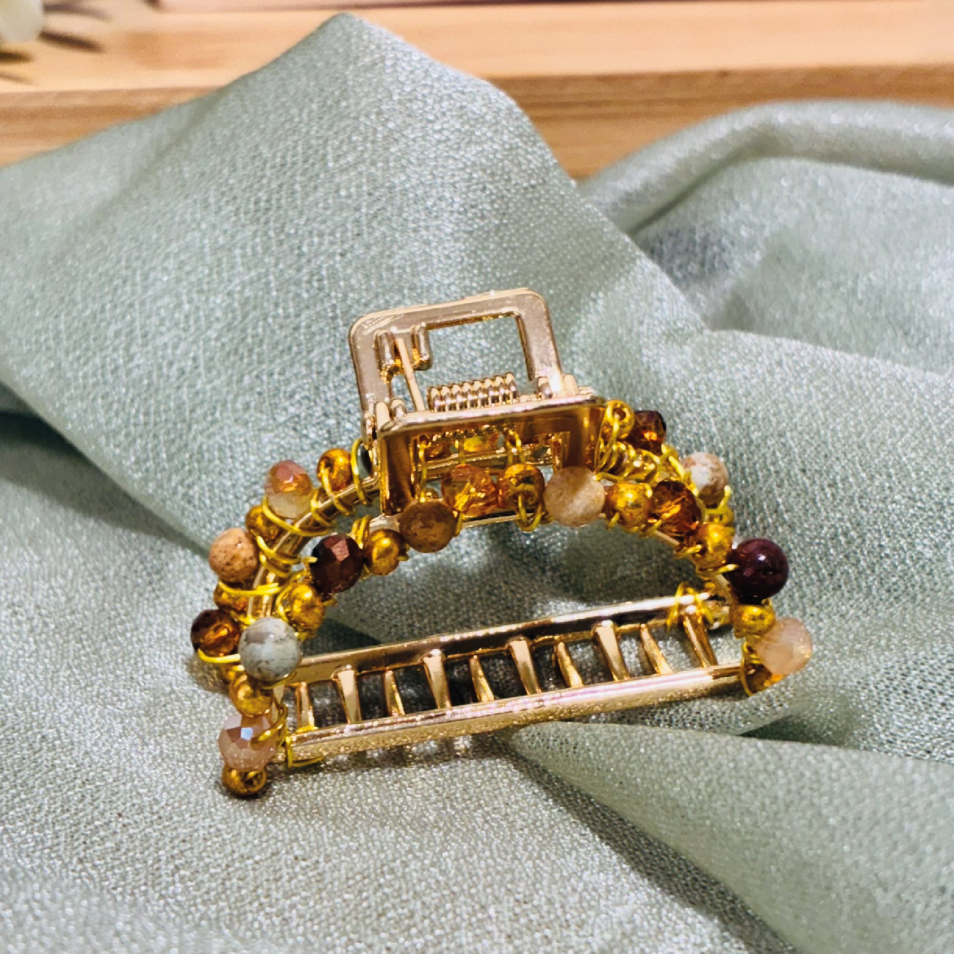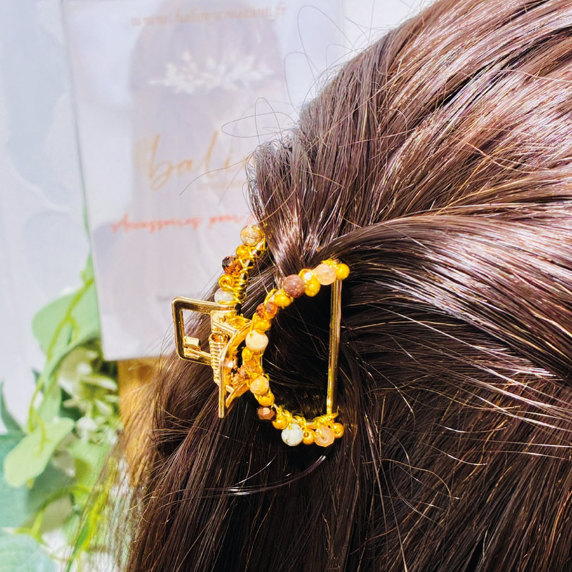 Pince croco petit modèle doré. Ornée de Jaspe Océan